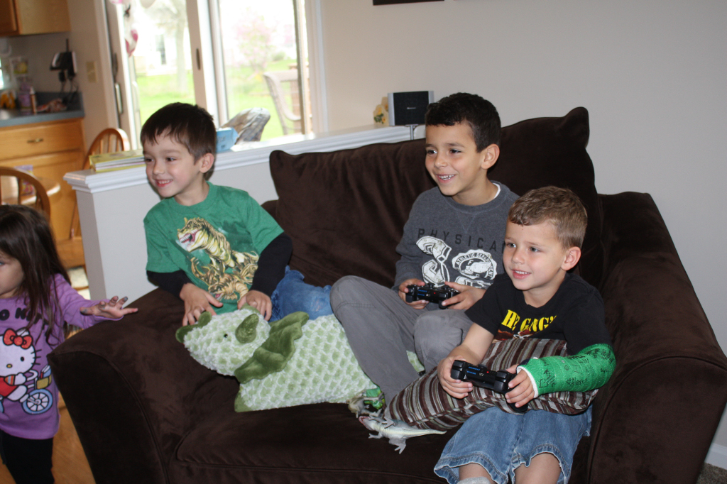 Gabi also has a cute little routine she does for us. She has an angry face, happy face, surprised face, and sad face. She also mimics Gramma's moves when she does her Toddler's and Tiara routine (poking fun at the show)! Like her siblings, Gabi is a natural climber. She can make navigate our playset and swings on a regular swing. Gabi loves playing with Isa and Will. It's wonderful to watch them all play together, running around, and rolling down our little hill in the back yard.
